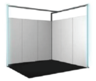 – Walls: 3mH powder coated feature framing with a 2.5mH